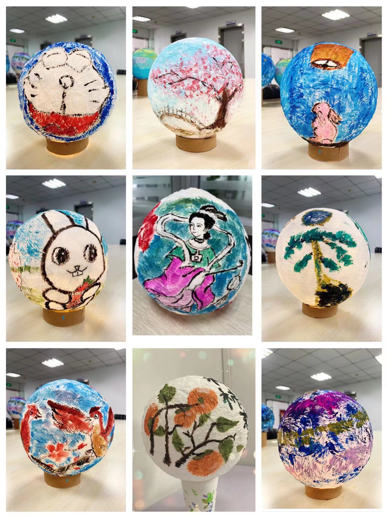 9月9日24h直播员工手绘“月球”活动,每人都是绘画天才,简单的纸做圆球,搭配彩色颜料,成为一个个精美的艺术作品。